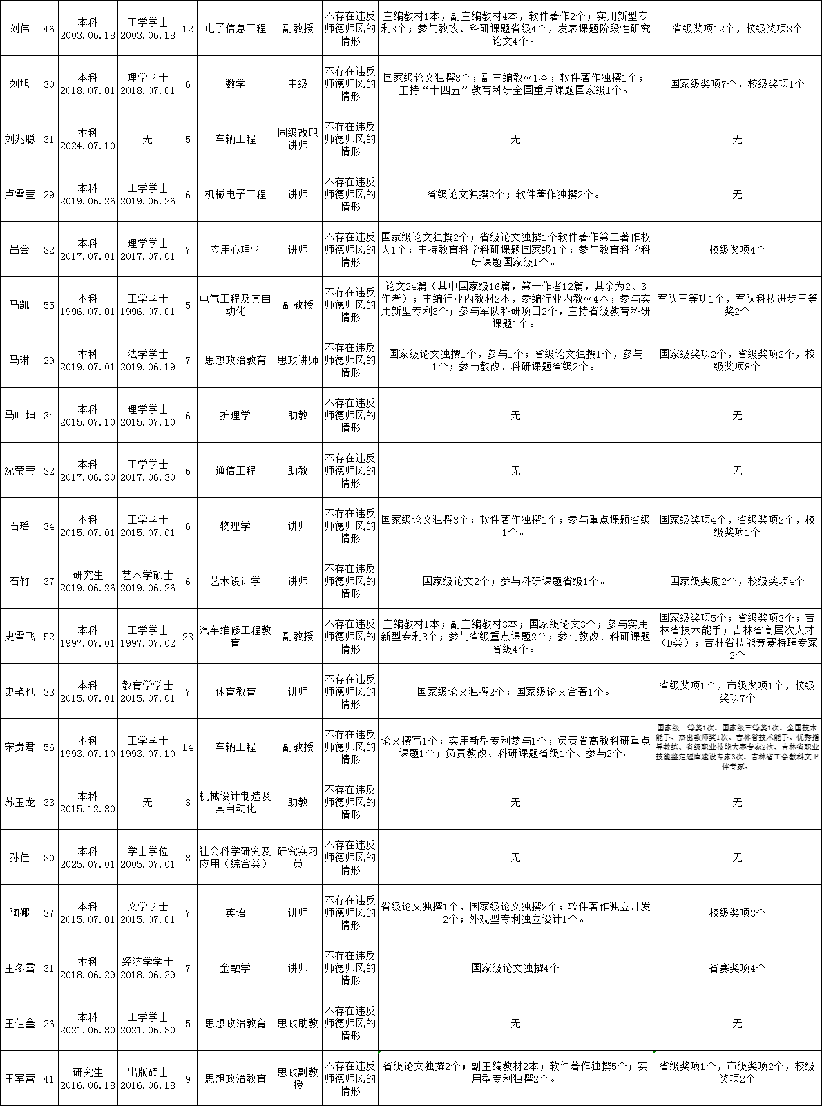 吉林城市职业技术学院关于对2026年申报专业技术职务人员情况的公示